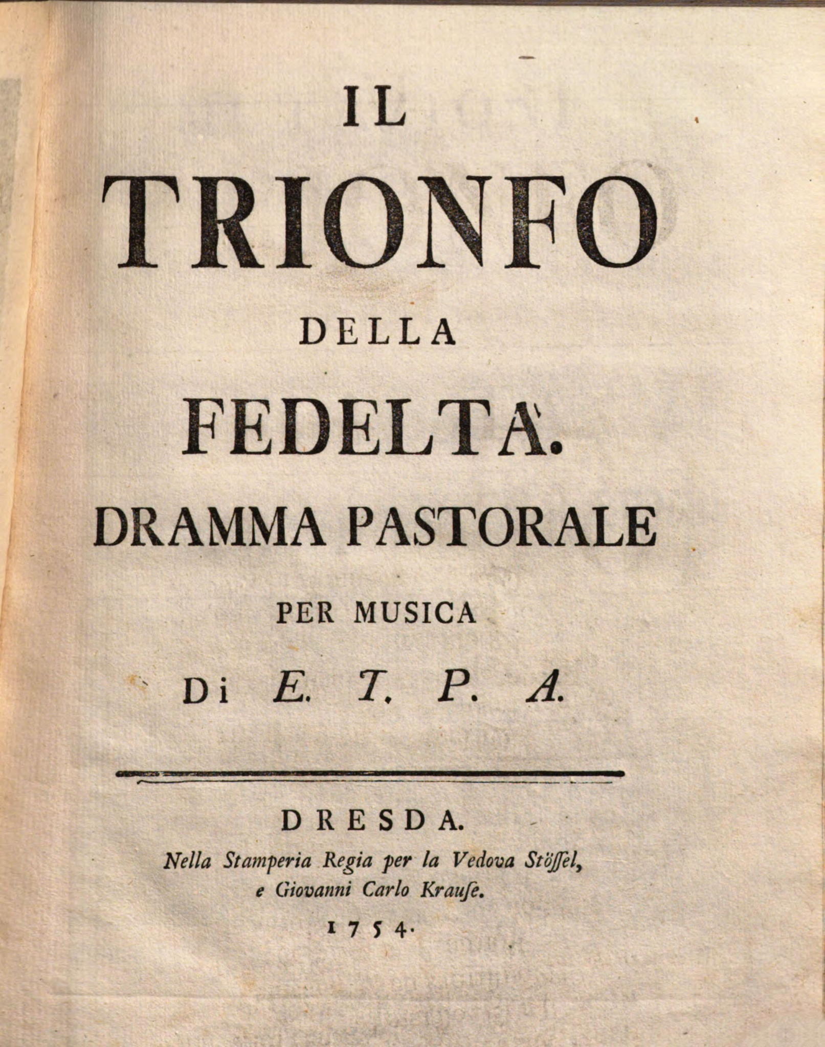 Il trionfo della fedeltà. Dramma pastorale per musica, di E. T. P. A.