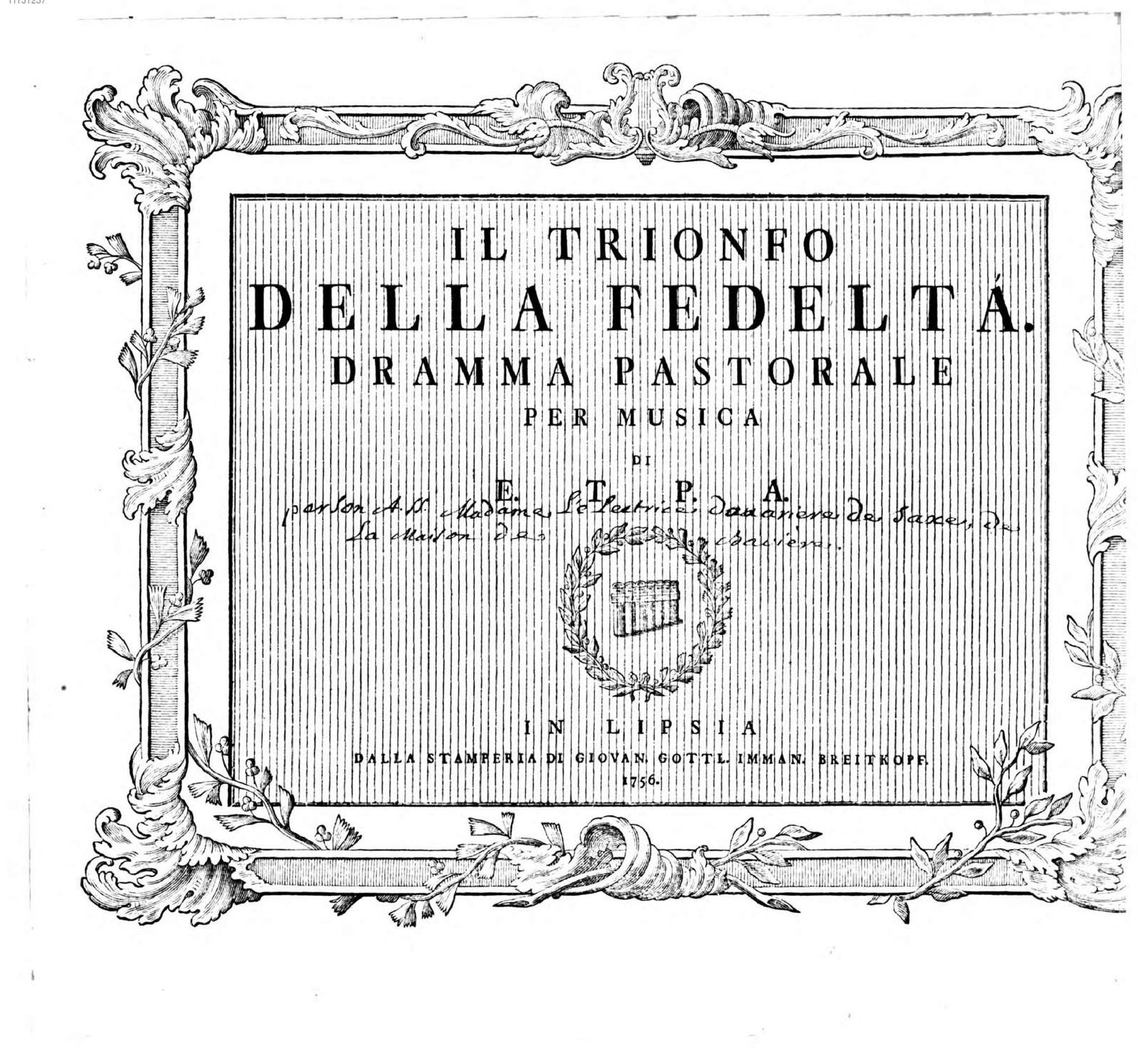 Il trionfo della fedeltà. Dramma pastorale per musica di E.T.P.A.