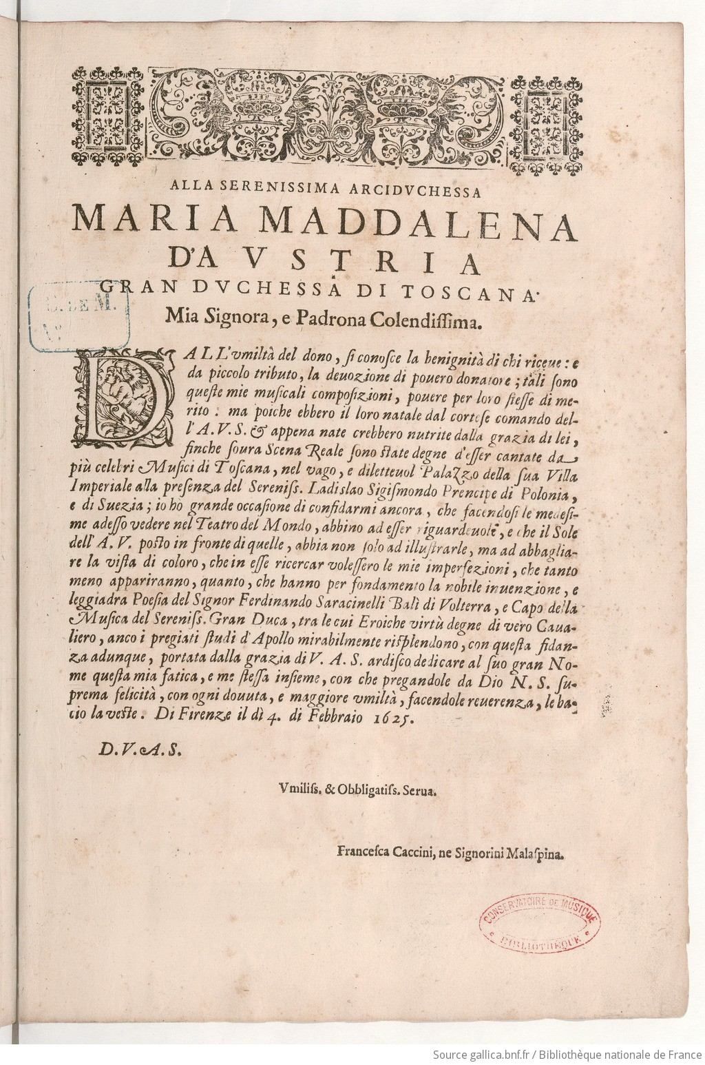 Balletto: La Liberazione di Ruggiero dell'Isola d'Alcina : Composto in Musica della Caccini ne Signorini Malaspina